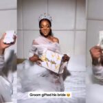 In a video that garnered thousands of likes on social media, the radiant bride was seated on what appeared to be a bed, where a package was presented to her.