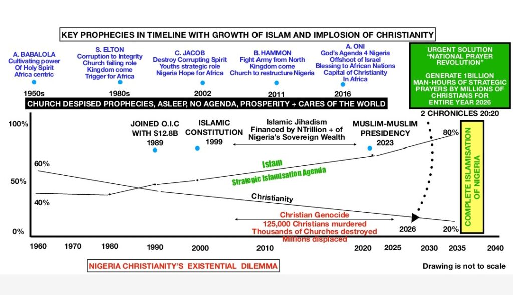 ​He suggested that the consequences of this spiritual negligence—”despising prophecy and not praying the way we should”—have manifested in severe national challenges, citing the advanced Islamization of Nigeria, pervasive insecurity, and the genocide that has claimed an estimated 125,000 Christians.