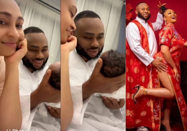 “I feel totally complete now”- Rosy Meurer overjoyed as Olakunle Churchill meets his newborn daughter for the first time