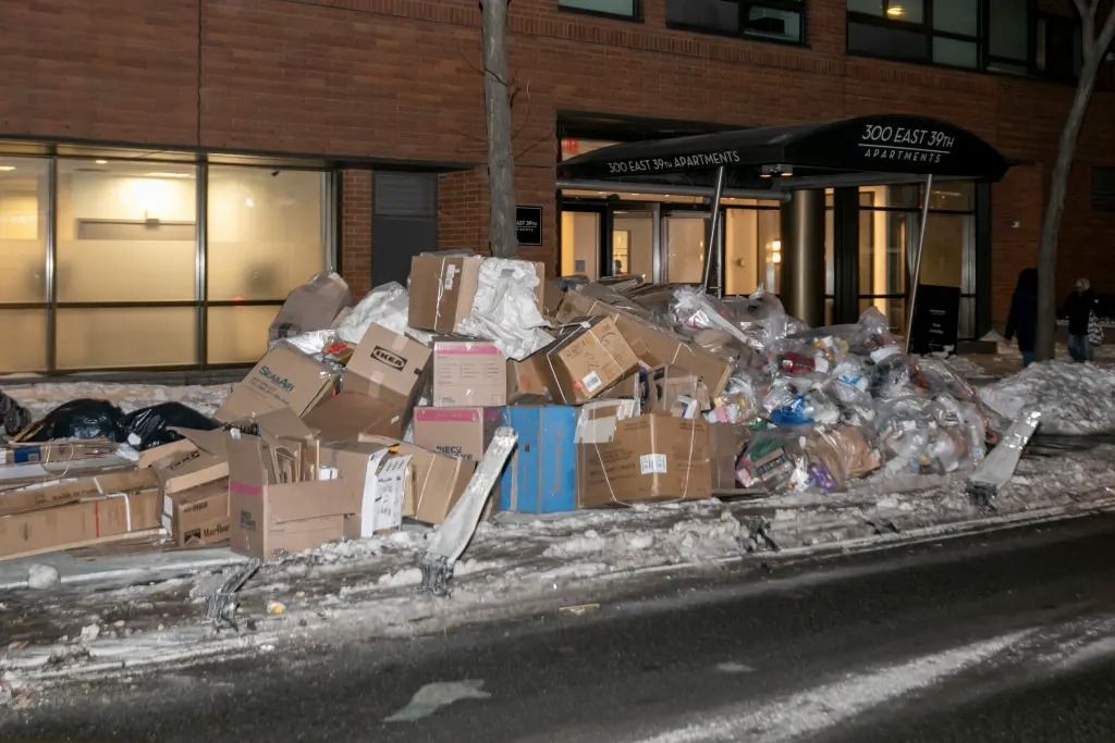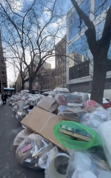 Photos obtained by the New York Post show sidewalks and curbs completely buried under overflowing garbage bags and flattened boxes, with some mounds towering higher than parked cars. The smell and the mess have turned everyday walks into something people are dreading.