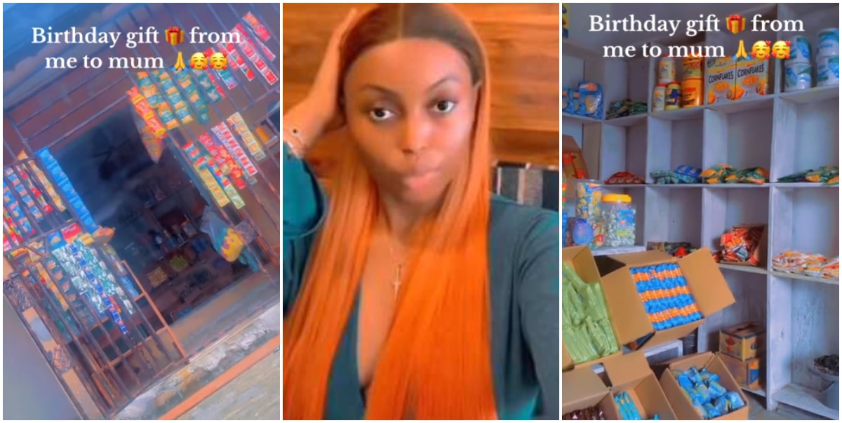 Nigerian lady melts hearts as she gifts her mother a mini supermarket on her birthday (Video)