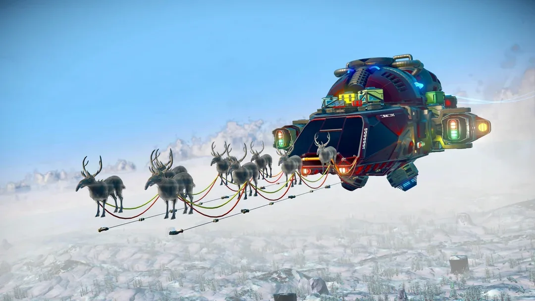 One player constructed a "Santa's Sleigh Corvette," a holiday-inspired design that even includes several reindeer floating in front of it.