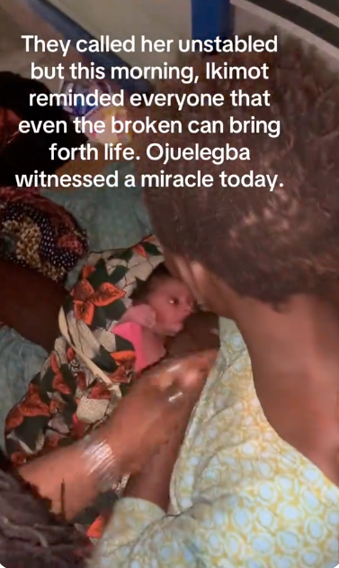 @_iyaibadan Ikimot delivered by herself. Before anyone could fully process what was happening, a small child lay beside her — alive. Breathing. Crying into a world that had almost ignored its mother. That was the moment everything shifted. The same neighbors who once passed her by… gathered. One brought water. Another brought cloth. Someone covered her. Someone carried the baby. Someone prayed. In that moment, Ikimot was no longer “mad.” She was a mother. ⸻ There’s something this street won’t forget anytime soon: A woman the world abandoned… still carried life. A woman people dismissed… still brought life into the world. A woman with nothing… still gave everything. ⸻ Maybe madness didn’t take everything from her. Maybe somewhere beneath the broken words and wandering steps… was strength we never cared to see. And today, that strength cried out loud — through a newborn child on the streets of Banire. #BanireStreetOjuelegbaSurulere ♬ original sound – _iyaibadan