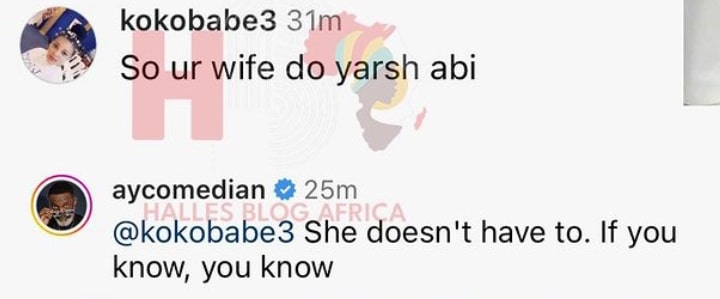 AY delivered a response to her question by noting that his wife doesn’t need to, as she’s always been endowed.