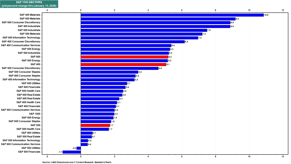 “On a [year-to-date] basis, the bull market in the S&P 500 is broadening, as we expected it might this year. The S&P 400 and S&P 600 are outperforming the S&P 500,” Ed Yardeni of Yardeni Research told clients this morning:
